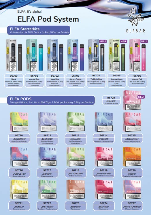 - ELFBAR E-Zigartten und Pods in vielen Geschmacksrichtungen